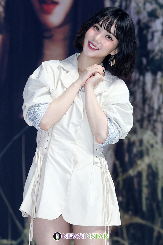 그룹 여자친구 은하가 1일 서울 광진구 예스24 라이브홀에서 열린 일곱 번째 미니앨범 ‘피버 시즌(Fever Season)’  쇼케이스에서 포즈를 취하고 있다.