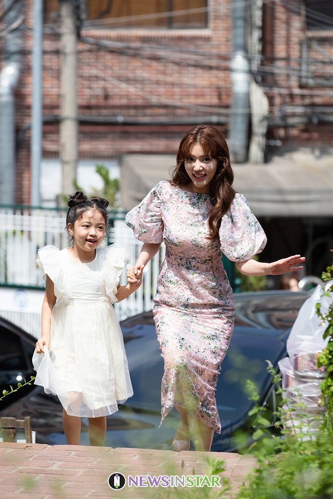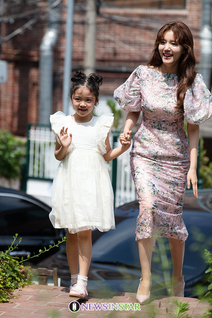 배우 정시아가 딸 백서우 양과 함게 2일 오전 서울 마포구 카페 '뽀에뜨'에서 진행된 미국북서부체리협회 '체리데이' 행사에 입장하고 있다.