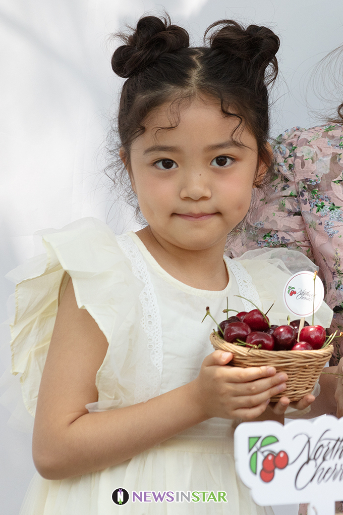 배우 정시아의 딸 백서우 양이 2일 오전 서울 마포구 카페 '뽀에뜨'에서 진행된 미국북서부체리협회 '체리데이' 행사에서 포즈를 취하고 있다.