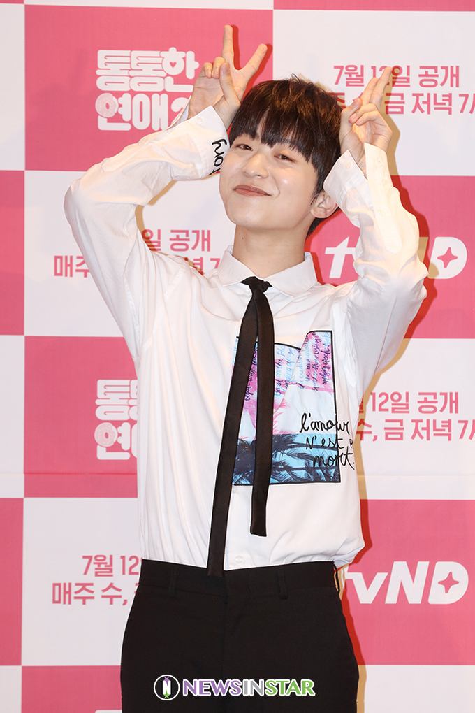 그룹 온앤오프 라운이 4일 오후 서울 영등포구 켄신텅호텔 여의도에서 열린 tvnD 웹드라마 '통통한 연애 시즌2' 제작발표회에서 포즈를 취하고 있다.