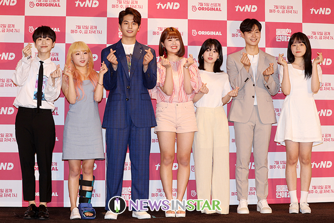 출연진이 4일 오후 서울 영등포구 켄신텅호텔 여의도에서 열린 tvnD 웹드라마 '통통한 연애 시즌2' 제작발표회에서 포즈를 취하고 있다.