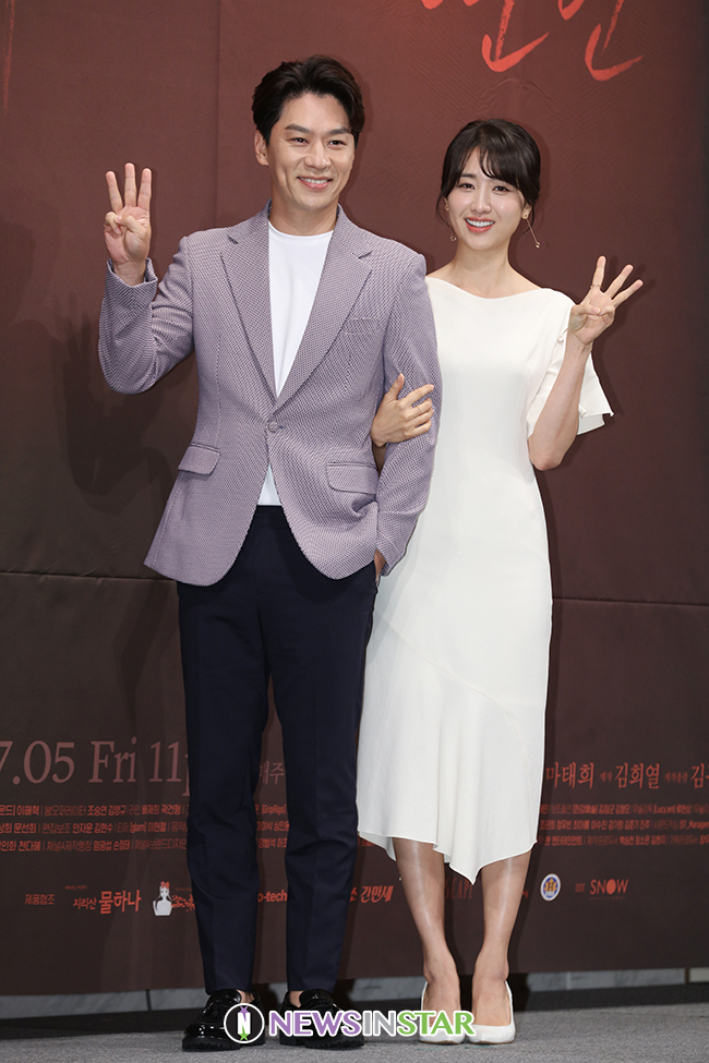 배우 정상훈, 박하선이 4일 오후 서울 강남구 임피리얼팰리스 서울에서 열린 채널A 드라마 '평일 오후 세시의 연인' 제작발표회에서 포즈를 취하고 있다.