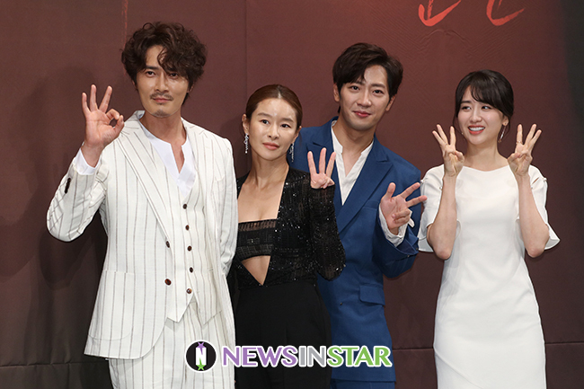 배우 조동혁, 예지원, 이상엽, 박하선이 4일 오후 서울 강남구 임피리얼팰리스 서울에서 열린 채널A 드라마 '평일 오후 세시의 연인' 제작발표회에서 포즈를 취하고 있다.