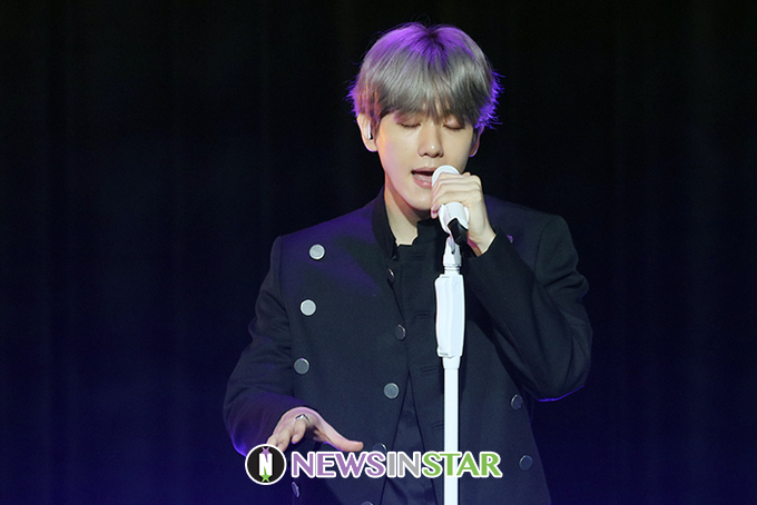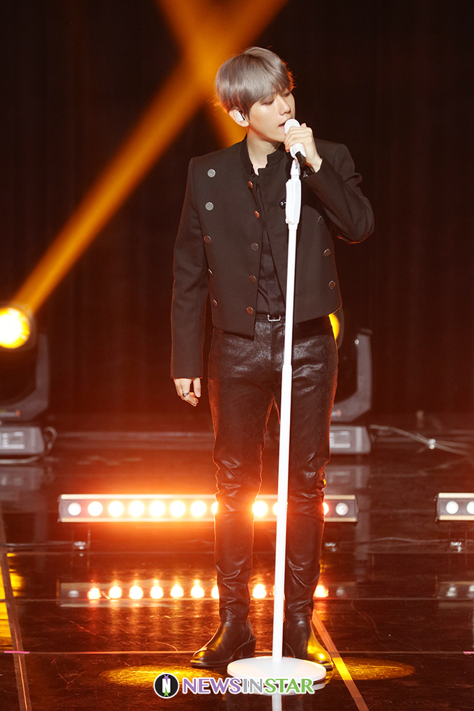 그룹 엑소 백현이 10일 오후 서울 강남구 sac아트홀에서 열린 백현 솔로 앨범 'City Lights'(시티라이츠) 쇼케이스에서 무대를 가졌다.