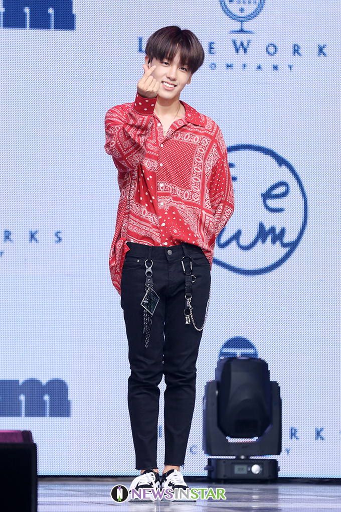 원팀(1TEAM) 루빈이 10일 오후 서울 광진구 예스24 라이브홀에서 열린 1TEAM 두 번째 미니앨범 'JUST'(저스트) 쇼케이스에서 포즈를 취하고 있다.
