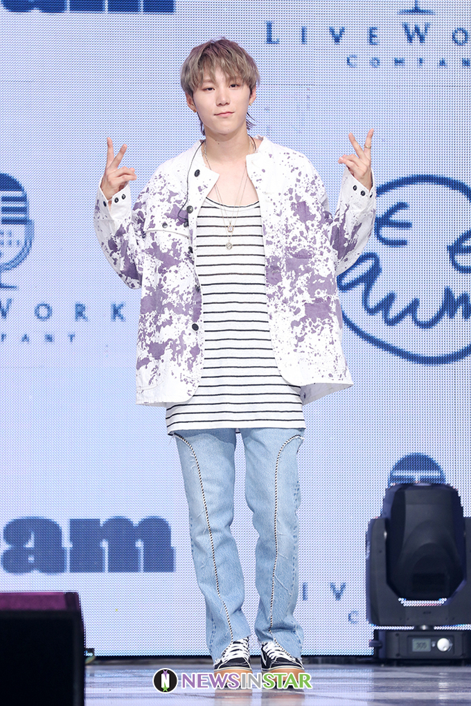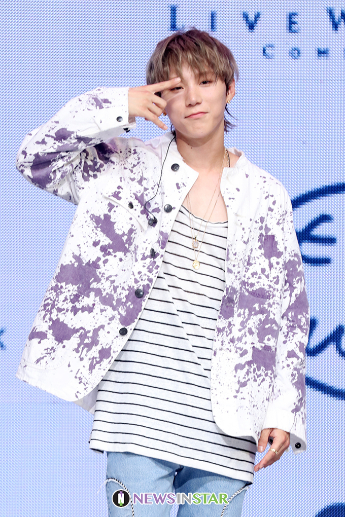 원팀(1TEAM) BC가 10일 오후 서울 광진구 예스24 라이브홀에서 열린 1TEAM 두 번째 미니앨범 'JUST'(저스트) 쇼케이스에서 포즈를 취하고 있다.