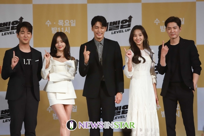 10일 오후 서울시 서초구 더 리버사이드 호텔에서 MBN 새 수목드라마 '레벨업' 제작발표회가 열려 배우 차선우, 한보름, 성훈, 강별, 데니안이 참석해 포토타임을 갖고 있다.