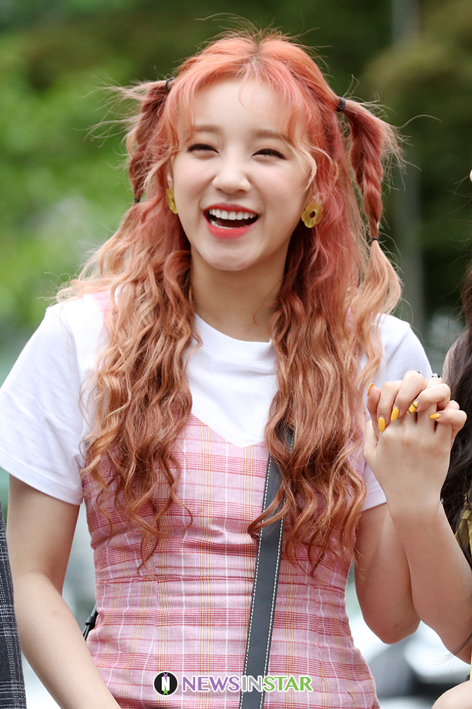 [뉴스인스타=서보형 기자] 그룹 (여자)아이들 우기가 12일 오전 서울 영등포구 KBS 신관에서 진행되는 KBS 2TV '뮤직뱅크'리허설에 참석하기 앞서 포즈를 취하고 있다.