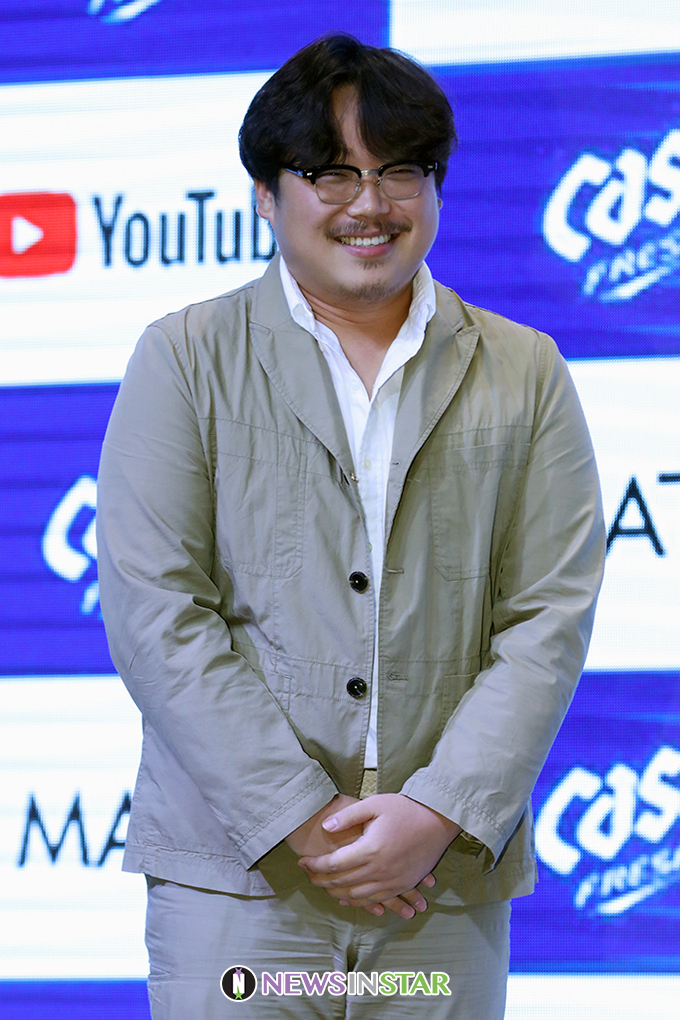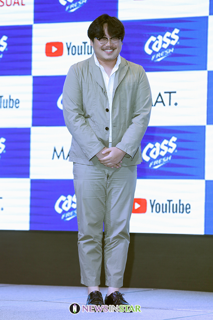 바닐라 감독이 12일 오전 서울 영등포구 여의도 글래드 호텔에서 열린 카스 브랜드 필름 '아오르비' 시사회에서 포즈를 취하고 있다.