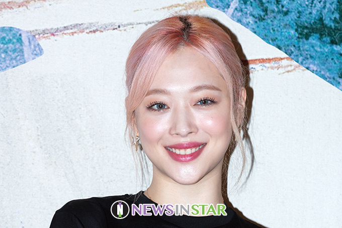 탤런트 설리가 12일 오후 경기도 성남시 분당구 현대백화점 판교점에서 열린 프라다 '썬더' 팝업 스토어 오프닝 기념 포토콜 행사에서 포즈를 취하고 있다.