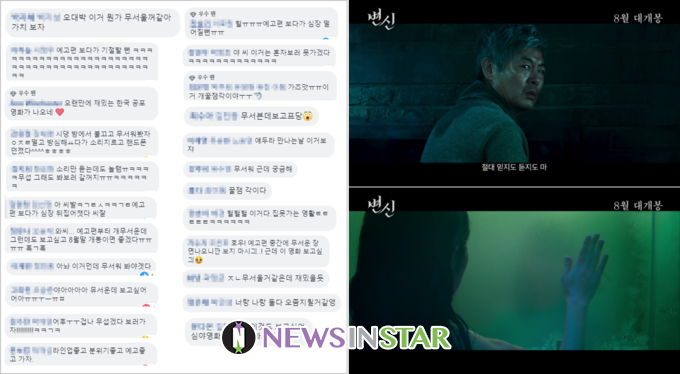 또한 예비 관객들은 지금껏 한국 영화에서 만나보기 힘들었던 스타일리시하면서도 스토리에 대한 호기심을 자극하는 <변신>의 독특한 예고편을 호평 중이다. 예비 관객들은 ‘느리게 감기’를 통해 한 컷, 한 컷 캡쳐를 하며 이미지의 의미를 파악하는 놀이에 푹 빠졌다. 개발자가 의미를 숨겨둔다는 ‘이스터에그’처럼 <변신> 1차 예고편에서 빠르게 지나가는 장면들을 놓치지 않으려는 피드백이 일어날 정도로 영상은 선풍적인 인기를 얻고 있다. 이는 마치 할리우드 흥행 공포 영화 조던 필 감독의 <겟 아웃>, <어스>등의 콘텐트를 접했을 당시 예비 관객들의 반응과 유사하다. 1차 예고편을 접한 관객들은 “일단 예고편은 이것만 보고 <변신> 내용은 다 차단 해야겠다. 무조건 극장가서 1차로 본다”, “임팩트 대박”, “영화 끝내줄 것 같다”, “올 여름 젤 복병이 될 듯” 등 폭발적 반응을 보이는 중이다. 특히 <변신>은 2019년 개봉한 공포 영화 예고편들의 동시기 누적 수치와 비교했을 때도 <어스> <애나벨: 집으로> <사탄의 인형> 등을 모두 뛰어넘어 단언컨대 가장 강력한 공포 영화 탄생을 예고한다. 네티즌들의 반응과 함께 과연 <변신>은 어떤 영화일지 극장가에선 올해 가장 궁금한 작품으로 떠올랐다.