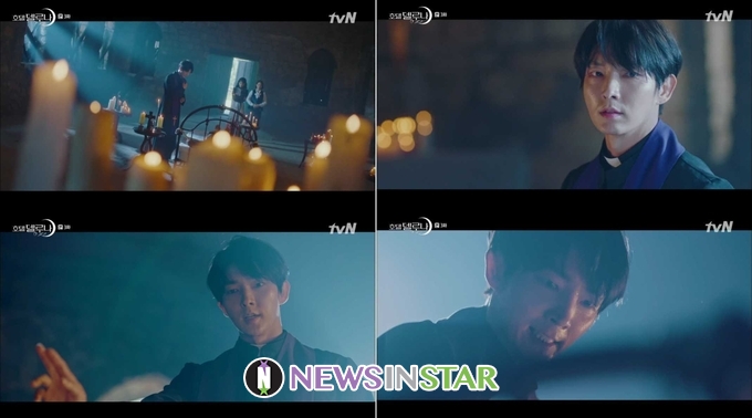 이준기는 부마자 앞에서 라틴어로 된 기도문을 외우며 퇴마의식을 거행하는 임팩트 있는 연기를 선보였다. 짧은 등장이었음에도 불구하고 시선을 사로잡는 그의 강렬한 눈빛과 범접할 수 없는 아우라는 순식간에 분위기를 영화로 만드는 마법을 부리기도.