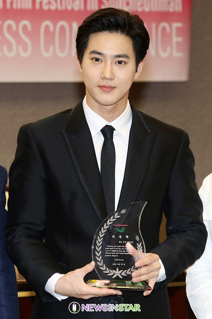 [뉴스인스타=서보형 기자] 그룹 엑소 수호가 24일 오전 서울 중구 한국프레스센터에서 열린 '제7회 순천만 세계 동물 영화제' 기자회견에서 포즈를 취하고 있다.