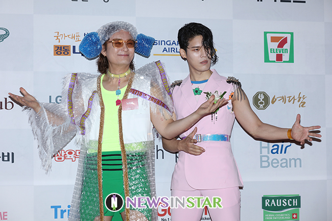 [뉴스인스타=서보형 기자] 그룹 노라조 조빈, 원흠이 24일 오후 서울 중구 신라호텔에서 열린 '2019 올해의 브랜드 대상' 시상식 포토월 행사에서 포즈를 취하고 있다.