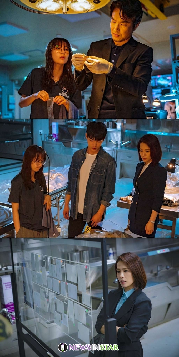 그런 가운데 공개된 사진 속, 국과수 부검실에서 포착된 비리수사팀의 모습이 호기심을 자극한다. 비리수사팀이 발견한 시체 더미는 은폐된 진실에 닿을 수 있는 첫 단추. 도치광과 조수연은 사소한 단서도 놓치지 않으려 몰두하고 있다. 날카롭게 매의 눈을 반짝이던 도치광이 발견한 것은 신원을 알 수 없는 자의 다잉 메시지. 진실을 규명할 단서가 될 수 있을지 궁금증이 커진다. 살인자를 잡기 위해 협력을 약속한 김영군과 한태주의 표정 역시 예사롭지 않다. 주의 깊게 증거사진을 살피는 한태주의 눈빛이 중요한 것을 발견이라도 한 듯 반짝인다. 언제나 사건의 흐름을 꿰뚫으며 판을 만들기도, 흔들기도 하면서 자신의 목적을 달성했던 한태주. 이번에는 어떤 큰 그림을 그려나갈지 호기심을 자아낸다.