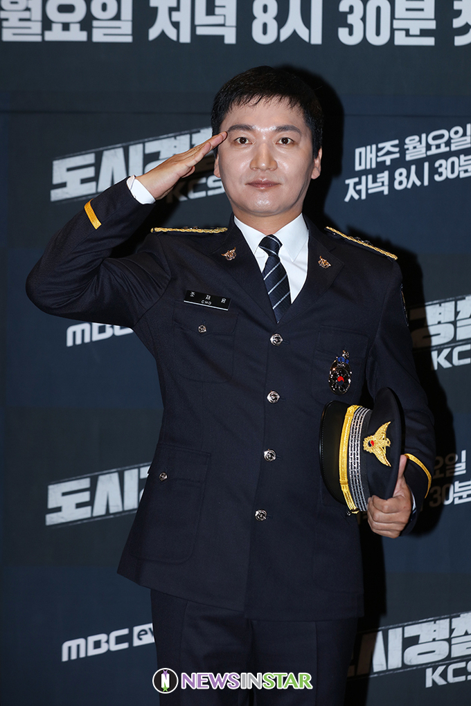 배우 조재윤이 29일 오전 서울 마포구 스탠포드호텔코리아에서 열린 MBC every1 예능 '도시경찰 : KCSI' 제작발표회에서 포즈를 취하고 있다.