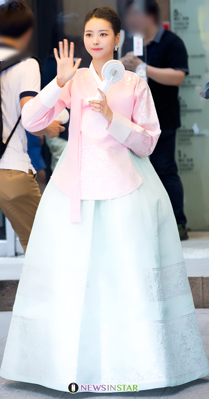 가수 임나영이 29일 오전 서울 종로구에 위치한 한 인사동 거리에서 '인사동 전통문화 홍보대사' 화보 촬영을 취재진들과 팬들 앞에서 갖고 있다.