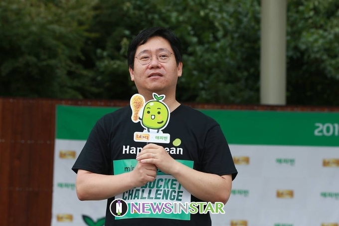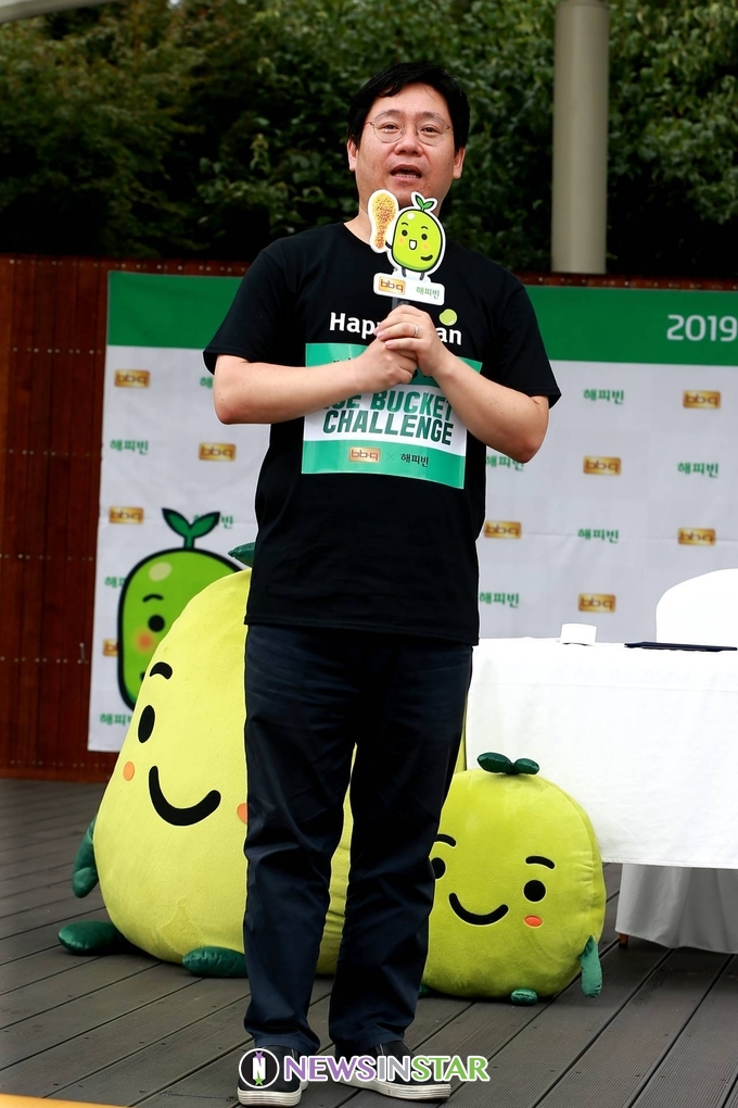 30일 (화) 오전 서울시 동작구 노들나루공원에서 'BBQ X 네이버와 가수 션이 함께하는 아이스버킷 챌린지 런 행사'가 열려 최인혁 네이버 해피빈 대표가 인사말을 하고 있다.