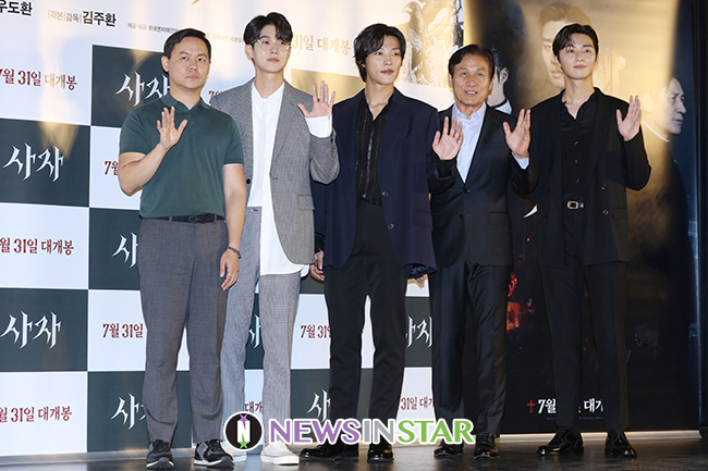 [뉴스인스타=서보형 기자] 김주환 감독과 출연진이 30일 오후 서울 송파구 롯데시네마 월드타워에서 열린 영화 '사자' VIP 시사회에서 포즈를 취하고 있다.