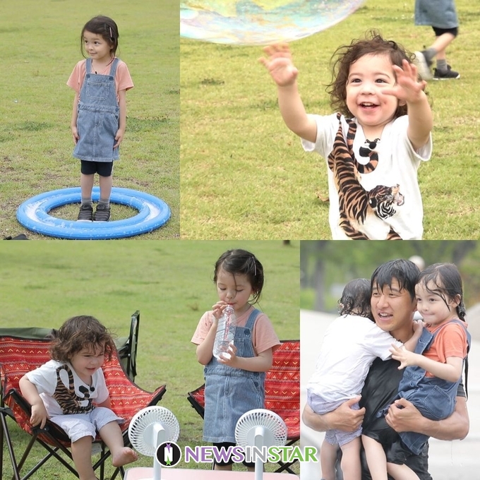 공개된 사진 속 건나블리는 초록 잔디밭에서 행복한 시간을 보내고 있다. 의문의 링 안에 들어가 있는 나은이의 기대감 넘치는 눈빛과 비눗방울을 따라가는 건후의 해맑은 미소에서 넘치는 즐거움이 느껴진다.