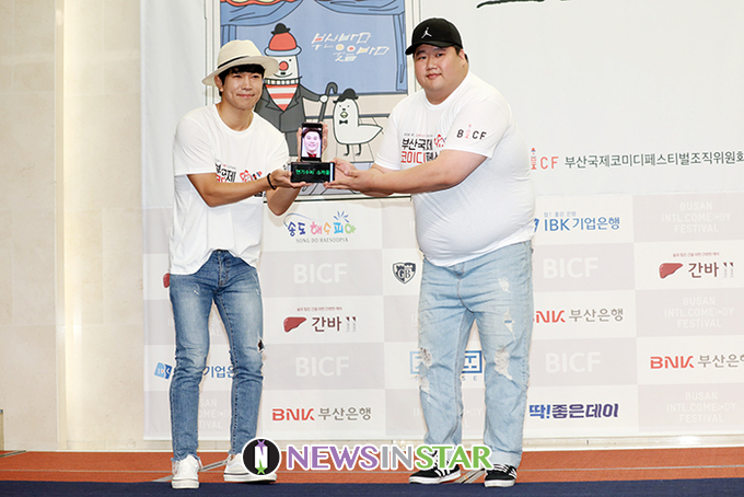 [뉴스인스타=서보형 기자] 개그 장기영, 김태원이 8일 오전 서울 마포구 스탠포드호텔코리아에서 열린 제 7회 '부산국제코미디페스티벌' 기자회견에서 포즈를 취하고 있다.