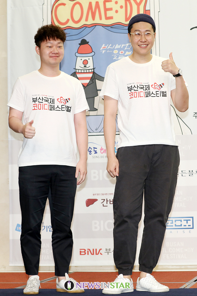 [뉴스인스타=서보형 기자] 개그맨 정재형, 이용주가 8일 오전 서울 마포구 스탠포드호텔코리아에서 열린 제 7회 '부산국제코미디페스티벌' 기자회견에서 포즈를 취하고 있다.