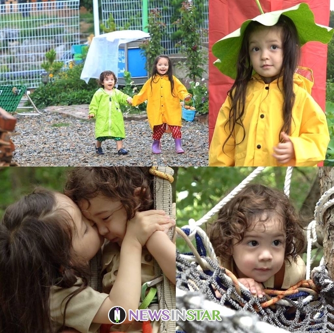 공개된 사진 속 건나블리는 우비를 입고 걸어가고 있다. 나은이는 한 손에 건후의 손을, 한 손에 무언가가 가득 든 바구니를 들고 있다. 아이들의 해맑은 얼굴에서 뿌듯함이 느껴져, 무엇을 한 가득 채집한 것인지 궁금하게 만든다. 이어 머리 위에 연잎을 쓰고 있는 나은이의 모습이 귀여워 시선을 강탈한다.