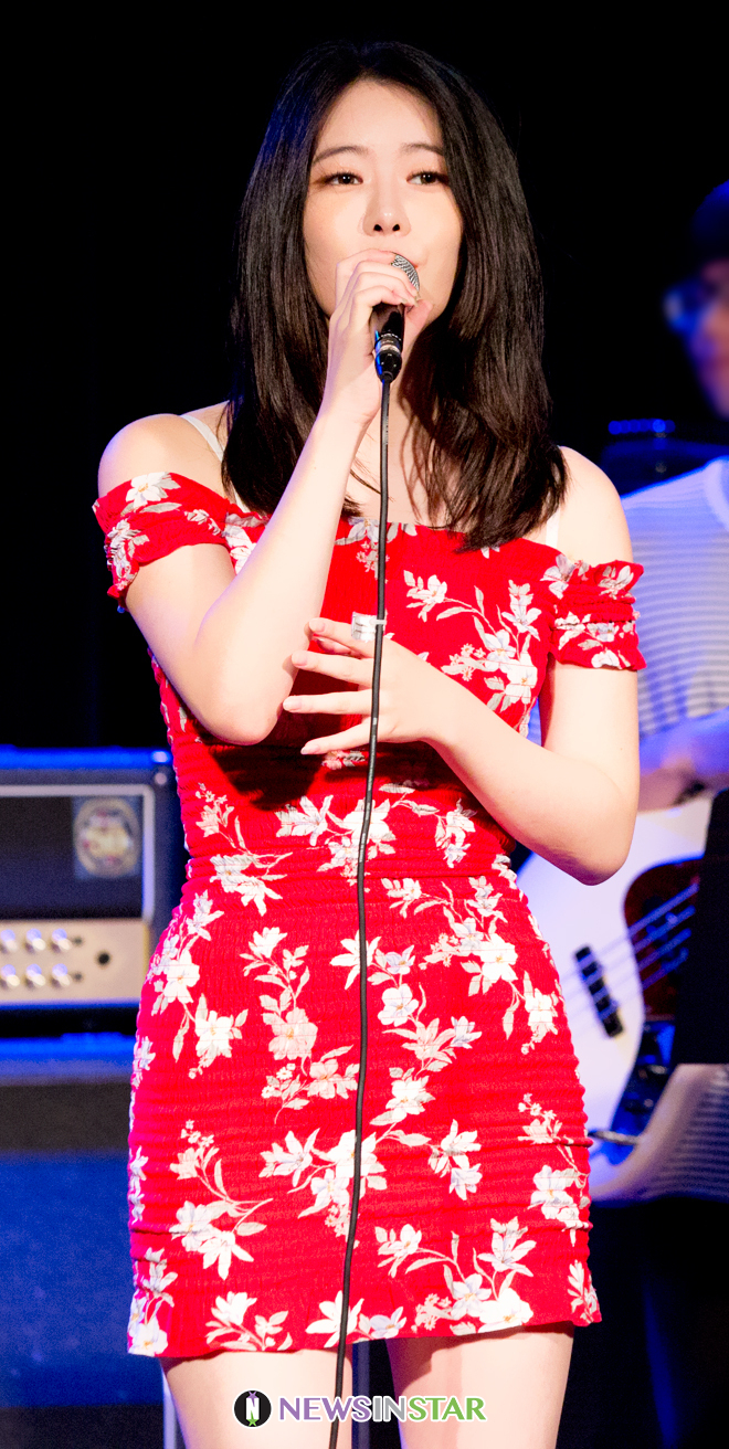 걸그룹 전 프리스틴의 멤버였던 레나(본명: 강예빈)이 11일 오후 서울 종로구 연건동에 위치한 대학로SJA빌딩 지하 1층 홀에서 열린 SJA아카데미 거리공연에 참석하여 공연을 선보이고 있다.