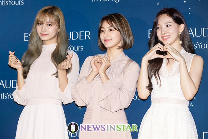 [뉴스인스타=서보형 기자] 그룹 트와이스 쯔위, 지효, 나연이 13일 오후 서울 중구 신라호텔에서 열린 뷰티 브랜드 에스티 로더 신제품 '어드밴스드 나이트 리페어 인텐스 리셋 컨센트레이트' 론칭 행사에서 포즈를 취하고 있다.