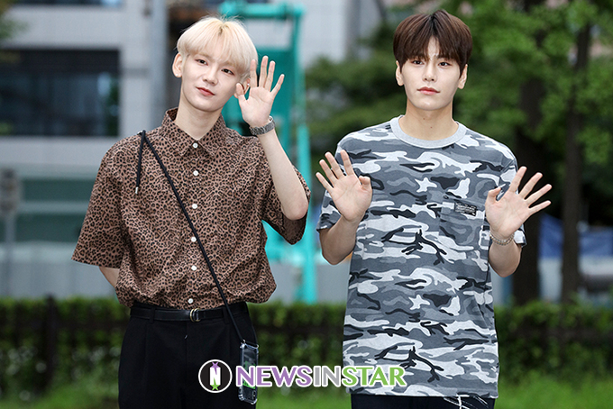 [뉴스인스타=서보형 기자] 그룹 JBJ95의 켄타, 상균이 16일 오전 서울 영등포구 KBS 신관에서 진행되는 KBS 2TV '뮤직뱅크'리허설에 참석하기 앞서 포즈를 취하고 있다.