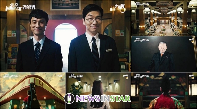 이번 영상을 통해 공개된 천리마마트 내부 역시 의외로 널찍하고 깔끔하다. 각 코너별로 물건들도 나름 잘 정돈돼있다. 그러나 이곳을 들어선 사람들의 뒷모습이 심상치 않다. 마치 천리마마트를 굽어보고 있는 것 같은 대마그룹 회장 김대마(이순재)의 초상을 시작으로, 헤어젤로 머리를 넘긴 남자, 기타를 매고 선 남자, 뽀글 파마를 한 남자, 긴 생머리의 여자와 곤룡포를 입은 누군가까지. 아직 정체가 밝혀지지 않은 인물들이 빠르게 지나간 뒤, 들리는 목소리. 손님이 아니라 “직원이 왕”이란다. 역시 이 세상에 있을 것 같은 마트는 아니다.
