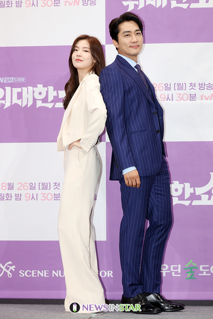 [뉴스인스타=서보형 기자] 배우 이선빈, 송승헌이 21일 오후 서울 강남구 임피리얼팰리스서울에서 열린 tvN 드라마 '위대한 쇼' 제작발표회에서 포즈를 취하고 있다.