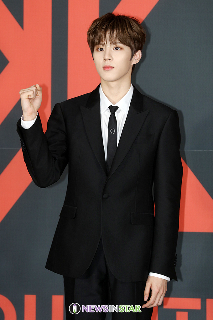 [뉴스인스타=서보형 기자] 그룹 X1(엑스원)의 김우석이 27일 오후 서울 구로구 고척스카이돔에서 열린 데뷔 기자간담회에서 포즈를 취하고 있다.