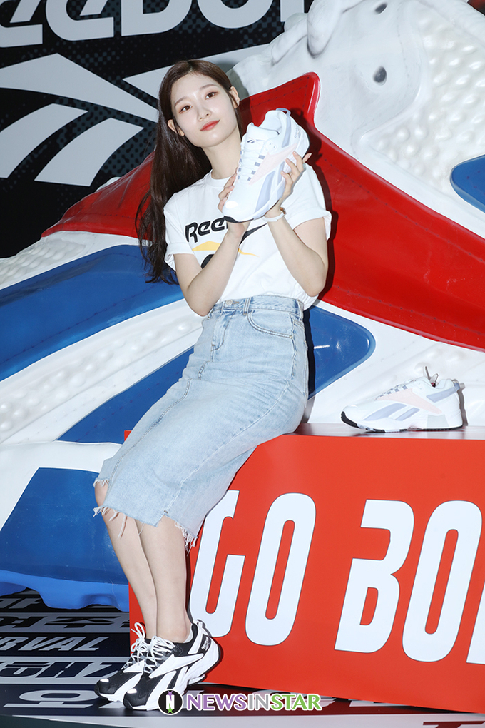 [뉴스인스타=서보형 기자] 그룹 다이아의 정채연이 6일 오후 서울 영등포 타임스퀘어에서 열린 '리복, 볼드 스니커즈 인터벌' 출시 기념 4미터 신발 비행 퍼포먼스 행사에서 포즈를 취하고 있다.