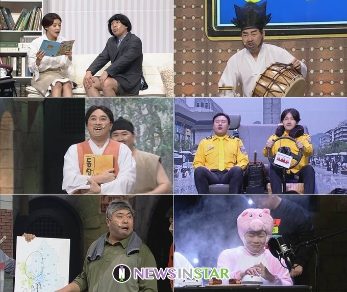 ‘가족오락가락관’ 코너의 양세찬, 이용진은 래퍼 비와이씨와 도보로 변신하며, 이진호는 우리 것을 사랑하는 남자 신토불이로, 양세형은 천재 드러머 ‘양플래시’로 분해 역대급 존재감을 뽐냈다는 후문. ‘산적은 산적이다’ 코너에서는 무려 5개의 새 캐릭터를 선보인 황제성과 더불어 문세윤, 홍윤화, 최성민, 박영재, 양배차, 최우선의 물오른 연기력이 폭소를 안기고, ‘국주의 거짓말’의 이국주, 김철민, 설명근은 화려해진 패션만큼이나 차별화된 소재로 시선을 사로잡았다고.