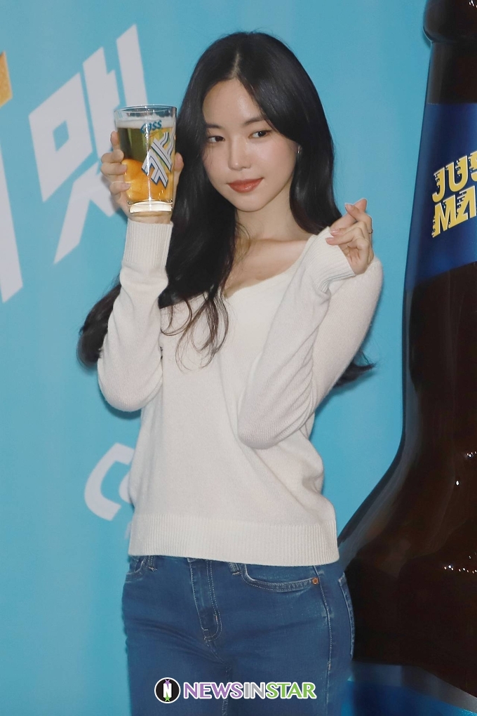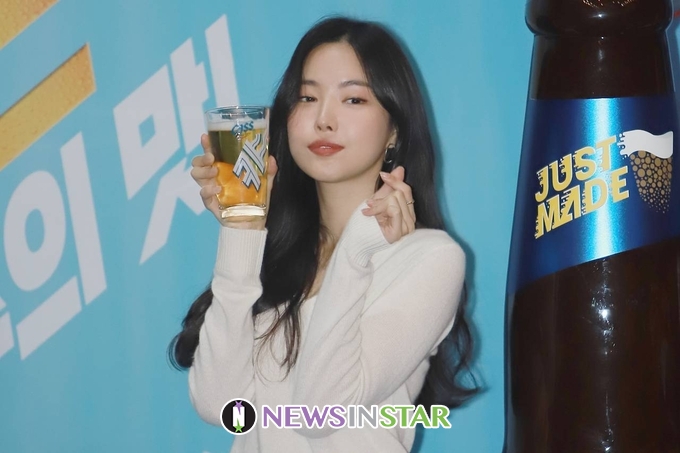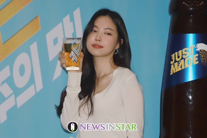 8일 오전 서울시 강남구 삼성동 메가박스 코엑스에서 오비맥주의 카스의 신규 TV광고 '캬~, 갓 만든 생맥주의 맛' 최초 공개 기자 간담회가 열려 새로운 광고모델인 손나은이 참석해 포토타임을 갖고 있다.