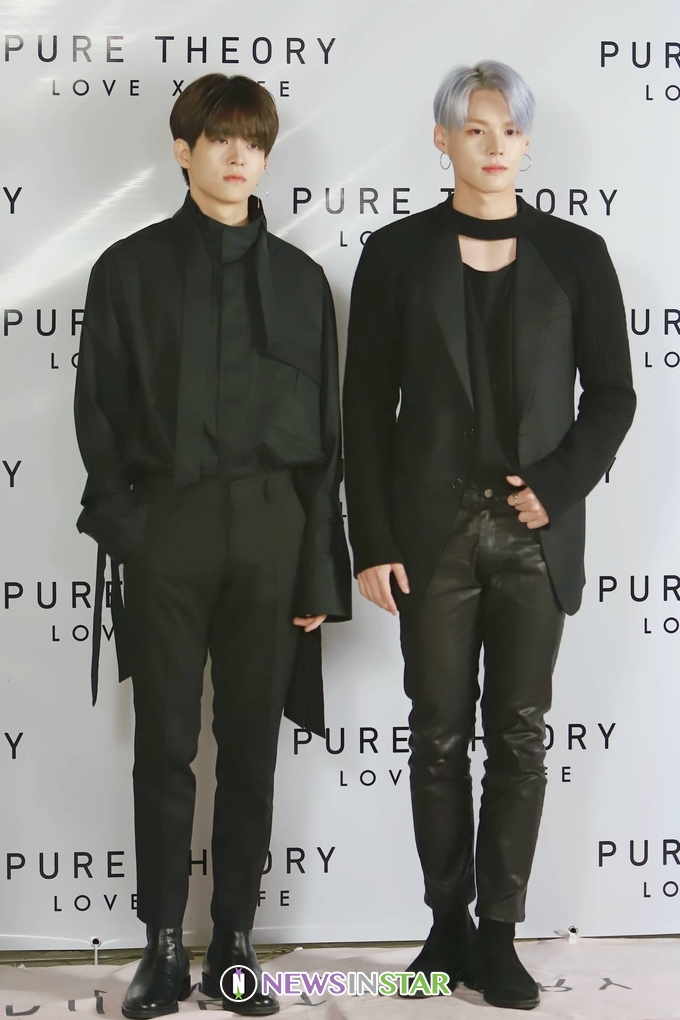 14일 오후 서울시 용산구 한남동 어퍼 콜라보에서 코스메틱 브랜드 '퓨어띠어리(PURE THEORY)'의 론칭 파티가 열려 에이핑크 김남주, 초롱, 보미, 여자친구 소원, 빅스 혁, 펜타곤 키노, 빅톤, 배우 문가영, 한지원 등이 참석해 빅톤 정수빈, 임세준이 포토타임을 갖고 있다.