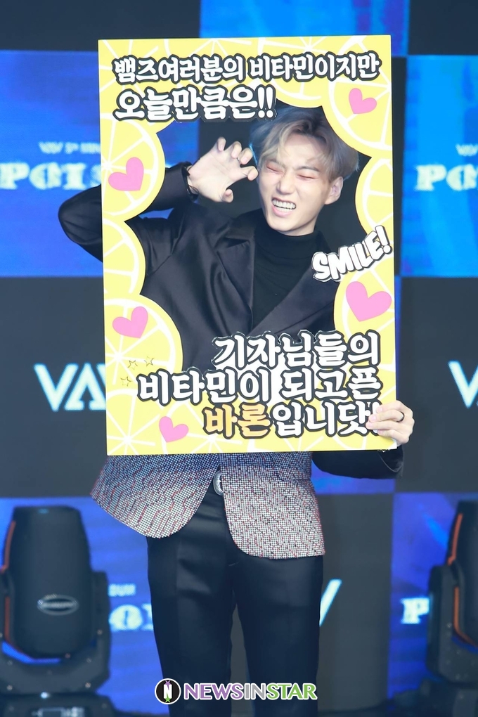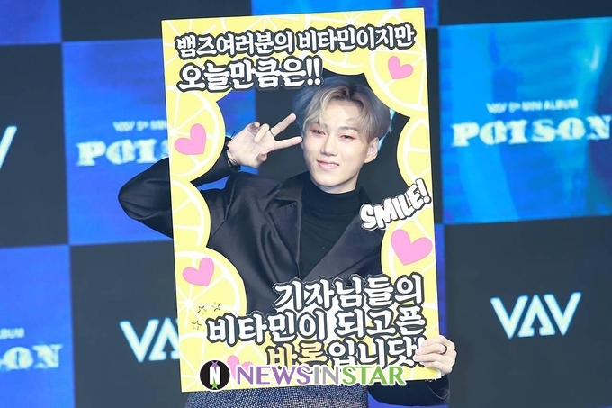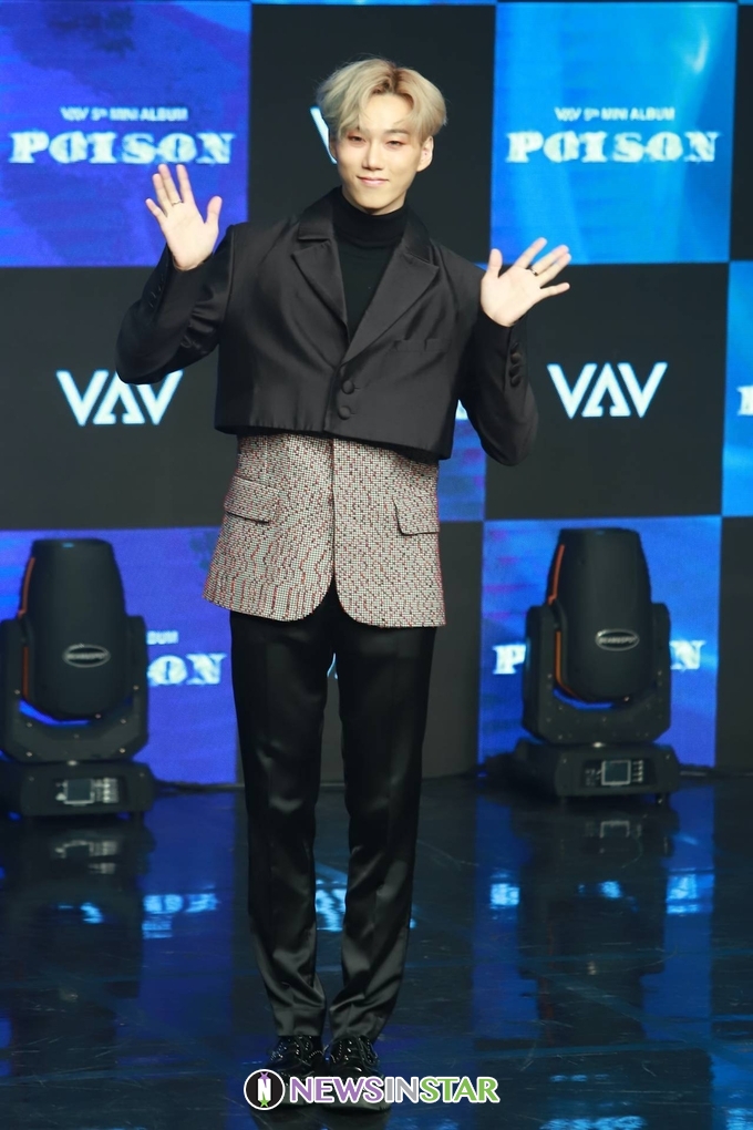 21일 오후 서울시 강남구 청담동 일지아트홀에서 보이 그룹 'VAV(브이에이브이)'의 다섯번째 미니앨범 ''Poison(포이즌)' 발매 기념 쇼케이스가 열려 바론이 포토타임을 갖고 있다.