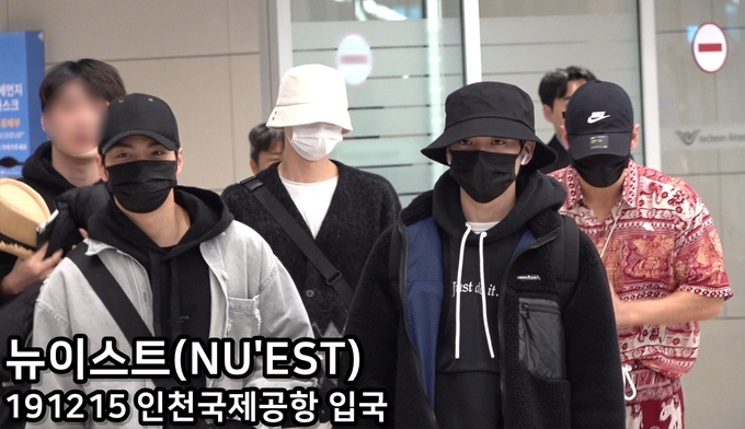 15일 오전 인천광역시 중구에 위치한 인천국제공항 제2터미널에서 그룹 뉴이스트가 해외 일정을 마치고 입국하고 있다.