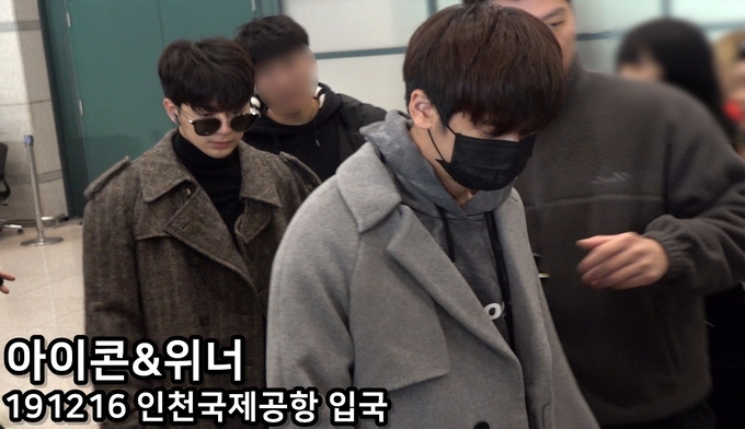 16일 오후 인천광역시 중구에 위치한 인천국제공항 제1터미널에서 그룹 아이콘과 위너가 해외 일정을 마치고 입국하고 있다.
