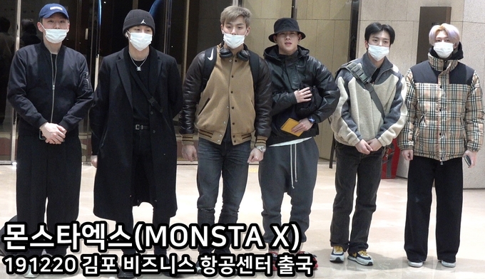20일 오후 서울 강서구에 위치한 김포 비즈니스 항공센터에서 그룹 몬스타엑스가 해외 일정 차 일본으로 출국하고 있다.