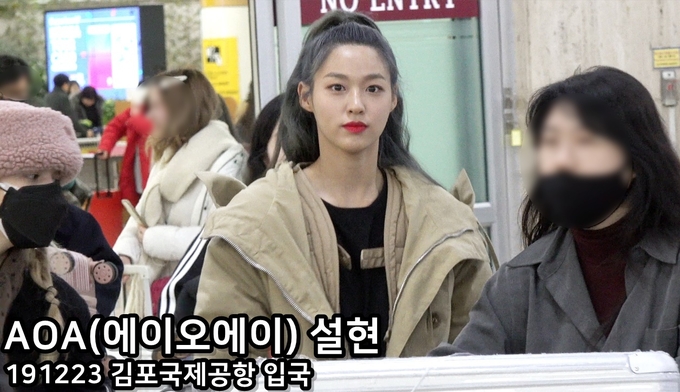 23일 오후 서울 강서구에 위치한 김포국제공항에서 걸그룹 AOA가 일본에서 해외 일정을 마치고 입국하고 있다.