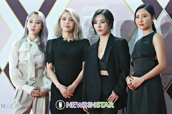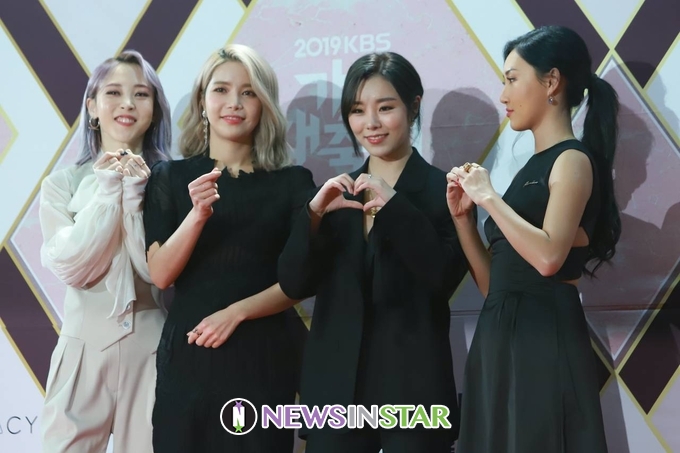 이날 포토월에 그룹 마마무(MAMAMOO) 솔라, 문별, 휘인, 화사가 참석해 포즈를 취하고 있다.