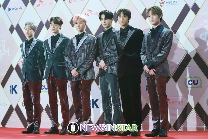 이날 포토월에 그룹 NCT DREAM 런쥔, 제노, 해찬, 재민, 천러, 지성이 참석해 포즈를 취하고 있다.