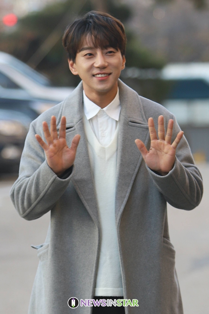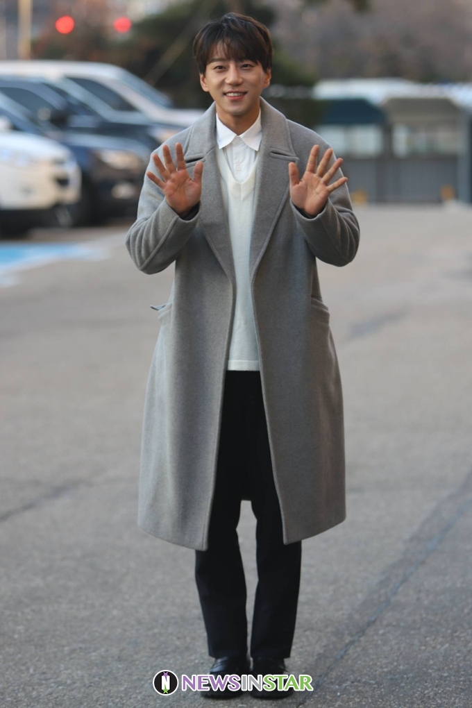 이날 황치열이 출근길에 포즈를 취하고 있다.