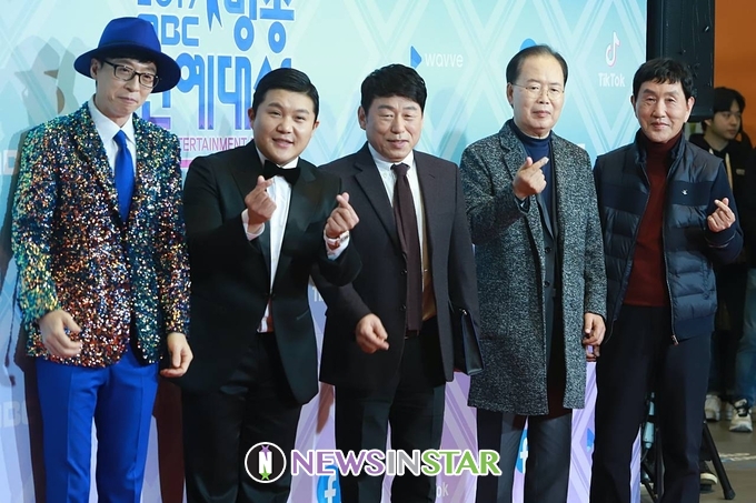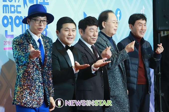 29일 오후 서울시 마포구 상암동 MBC 미디어센터에서 ‘2019 MBC 방송연예대상’ 시상식이 열려 식전 행사로 유재석, 조세호, 이건우, 정경천, 박현우 작곡가 참석해 포토타임을 갖고 있다.