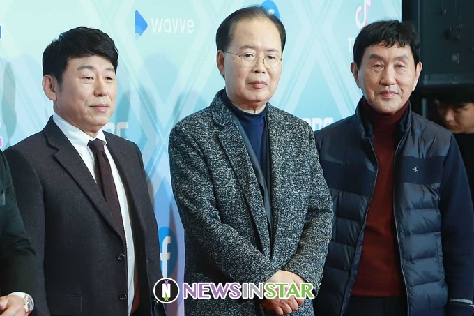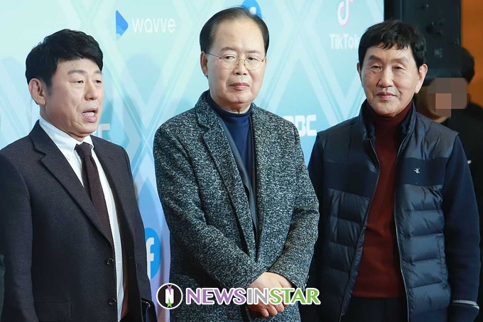 29일 오후 서울시 마포구 상암동 MBC 미디어센터에서 ‘2019 MBC 방송연예대상’ 시상식이 열려 식전 행사로 작사가 이건우, 정경천, 박현우가 참석해 포토타임을 갖고 있다.