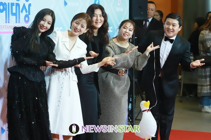 29일 오후 서울시 마포구 상암동 MBC 미디어센터에서 ‘2019 MBC 방송연예대상’ 시상식이 열려 식전 행사로 언니네 쌀롱팀(이사배, 차홍, 한혜연, 홍현희, 조세호)이 참석해 포토타임을 갖고 있다.