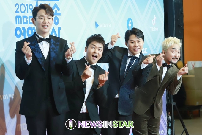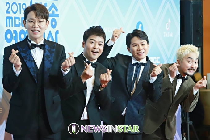 29일 오후 서울시 마포구 상암동 MBC 미디어센터에서 ‘2019 MBC 방송연예대상’ 시상식이 열려 식전 행사로 전지적 참견 시점(장성규, 전현무, 양세형, 유병재)이 참석해 포토타임을 갖고 있다.