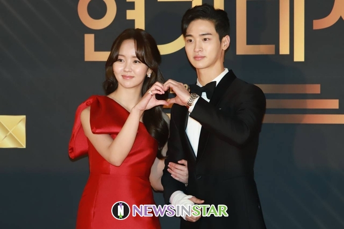 12월 31일 오후 서울시 영등포구 여의도 KBS 신관 웨딩홀에서 '2019 KBS 연기대상' 레드카펫 행사가 열려 '조선로코-녹두전' 배우 김소현, 장동윤이 참석해 포토타임을 갖고 있다.